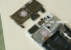 聽筒、光線傳感器采用金屬觸點與主板進行連接,同樣有類似膠水的東西進行固定。