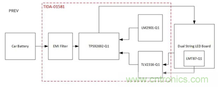 圖示1-大聯大世平推出基於TI產品的車輛日間行車燈LED驅動器參考設計係統架構圖