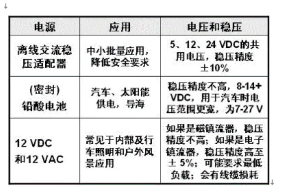 除了便攜供電應用,還有一係列高亮度LED應用工作在8至40 VDC範圍的電源,這些電源包括鉛酸電池、12-36 VDC適配器、太陽能電池以及低壓的12 和24 VAC交流係統。這類的照明應用眾多,如活動式照明、景觀和道路照明、汽車和交通照明、太陽能供電照明,以及陳列櫃照明等。