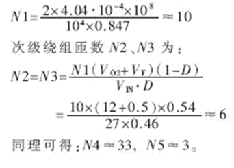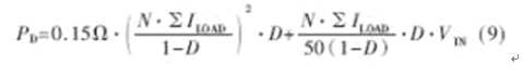 損耗功率PD主要取決於VI、多路輸出最大負載電流之和ΣILOAD以及主功率線圈比N等,其近似計算公式如下: