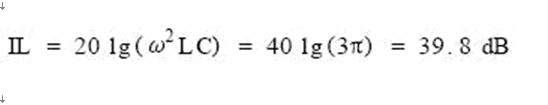 若取LmaxCymax值為100μHμF,頻率為150kHz,則插入損耗為: