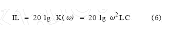 對於小功率的電子設備而言,LmaxCy,max的值通常為100μHμF,這是一個非常小的數值。以單級LC濾波器為例,為簡化分析,用電壓衰減來代替插入損耗,可得此時插入損耗為: