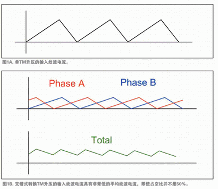 為了生產的更薄、高效而廉價的電源,近來開發了UCC28060,在單一設備中采用兩個交錯式轉換通道TM PFC的集成電路。UCC28060充分發揮了TM的全部優勢,並利用交錯式轉換的優勢來彌補TM的缺點。例如,如圖1A與1B所示,交錯式轉換降低了輸入紋波電流,所以可以使用小得多的EMIlvboqi。jiaocuoshizhuanhuanhaijiangdileshuchubowen,keshiyongjiaoxiaodeshuchudianrong,bingnengyanchangdianrongshouming。jiaocuoshizhuanhuanhaikejiangyigedadianganfenchenglianggejiaoxiaodediangan,tigaolegonglvjibiebingshixianlechaobodefengzhuang。
