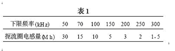 L1用yong於yu濾lv除chu低di頻pin共gong態tai噪zao聲sheng,它ta的de磁ci芯xin一yi般ban采cai用yong高gao頻pin鐵tie氧yang體ti磁ci性xing材cai料liao。由you於yu鐵tie氧yang體ti磁ci性xing材cai料liao沒mei有you渦wo流liu的de影ying響xiang,高gao頻pin率lv仍reng能neng保bao持chi較jiao高gao的de導dao磁ci率lv,缺que點dian是shi弱ruo磁ci場chang容rong易yi飽bao和he,但dan是shiL1在zai繞rao製zhi時shi采cai用yong雙shuang線xian並bing繞rao的de方fang式shi,即ji在zai一yi個ge閉bi合he磁ci路lu的de磁ci芯xin上shang繞rao製zhi相xiang同tong電dian感gan量liang的de兩liang個ge繞rao阻zu,電dian源yuan電dian流liu經jing兩liang個ge繞rao阻zu產chan生sheng相xiang反fan磁ci通tong,相xiang互hu抵di消xiao,防fang止zhi磁ci芯xin飽bao和he。對dui於yu共gong態tai噪zao聲sheng。互hu感gan係xi數shu產chan生sheng磁ci通tong相xiang互hu增zeng強qiang,即ji電dian感gan量liang增zeng強qiang,能neng很hen好hao的de抑yi製zhi共gong態tai噪zao聲sheng。L1的共態扼流圈的電感量一般由所要抑製的噪聲電平的下限頻率(DC/DC轉換模塊的基波頻率)確定,下限頻率越高,所需要的電感量越小,粗略對應值見表1。