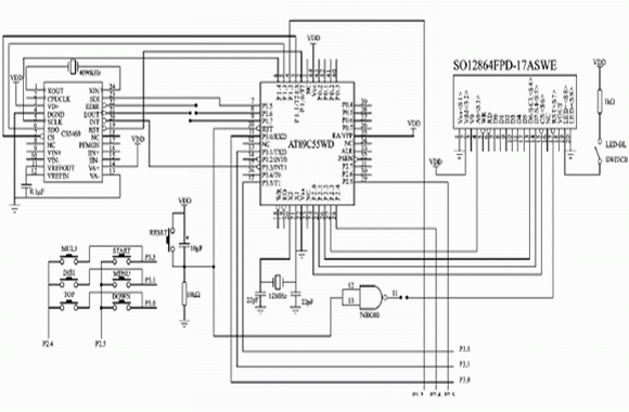 圖4為筆者設計的一個典型應用係統的原理圖。圖4為測量電能並在LCD上顯示的MCU應用係統。CPU采用AT89C55WD,最大耗電量為20 mA(若采用STC89C58RD+,則耗電量可降至9 mA左右);LCD選用SO12864,采用COG式,連同背光最大耗電為20mA;功率/電能計量芯片CS5460的最大耗電量為5 mA,加上複位、鍵盤等最大耗電量小於50 mA;繼電器輸出沒有畫出,耗電量為12mA。因此,完全可以使用VB409供電,且係統體積小,完全可以放置在LCD背後。