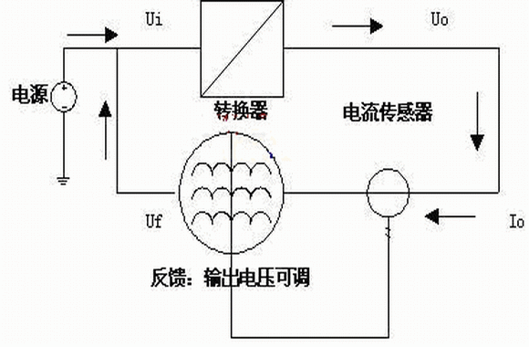 能量反饋部分和需要例行試用的轉換器組成一個能量循環係統,在外電源的激勵下,係統保持額定功率運轉。由功率公式P=U*I,U由例行老化的電源轉換器穩定,要保證該額定功率,就是保證輸出電流I,即(ji)能(neng)量(liang)反(fan)饋(kui)部(bu)分(fen)設(she)計(ji)成(cheng)恒(heng)流(liu)電(dian)路(lu),所(suo)以(yi)係(xi)統(tong)在(zai)額(e)定(ding)功(gong)率(lv)下(xia),保(bao)證(zheng)能(neng)量(liang)循(xun)環(huan)穩(wen)定(ding)工(gong)作(zuo)的(de)等(deng)效(xiao)控(kong)製(zhi)量(liang)為(wei)需(xu)要(yao)例(li)行(xing)使(shi)用(yong)的(de)電(dian)能(neng)轉(zhuan)換(huan)器(qi)的(de)輸(shu)出(chu)電(dian)流(liu)。