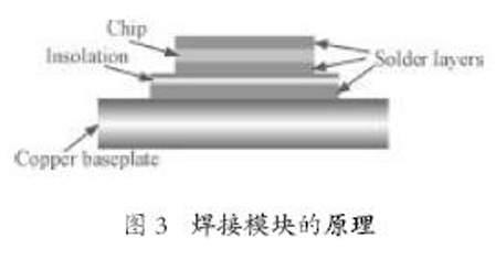 將一個矽片裝配和連接到一個器件上有不同的方法。在許多模塊中,矽片被焊在兩側(陽極和陰極側),並且是單麵冷卻。常用的焊接模塊的原理如圖3所示。