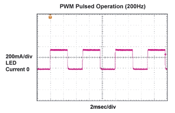 - 通過低頻PWM脈衝調製LED電流,控製LED燈源亮度