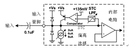 如果DAC的參考電壓為3.3V或1.8V或者是外部輸入,那麼采用AC耦合就是最佳模式。AC耦合使THS73x3能忽略DC偏置點的來源,並能重新建立自己的DC偏置點。AC耦合選項包括AC偏置和AC同步端鉗位。