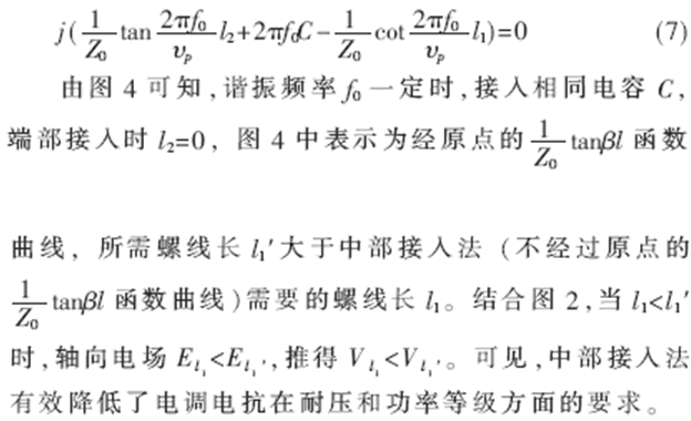 由圖2可知,軸向電場能量以sin2βz形式分布,開路端電場能量最為集中。端部加載時,加載電抗將不得不承受高電壓。例如,Qu=6000、30MHz、3dB帶寬為50kHz的螺旋濾波器,在RL=50Ω,傳輸功率45kW時,螺線端部電壓將達75kV。這給電調器件提出了相當高甚至難以達到的耐壓要求。
