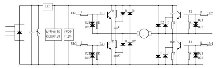 電機停車或減速時工作在製動狀態,儲存在電機和負載運動部分的動能將變成電能,並通過PWM 變換器回饋給直流電源。係統有不可控的整流器供電,不能向電網回饋電能,隻好對電容器C 充電而使泵升電壓升高,過高的泵升電壓有可能擊穿變換元件。泵升電壓檢測電路如圖3。