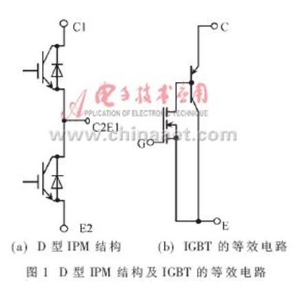 IPM由高速、低功率的IGBT芯片和優選的門級驅動及保護電路構成,如圖1所示。其中,IGBT是GTR和MOSFET的複合,由MOSFET驅動GTR,因而IGBT具有兩者的優點。