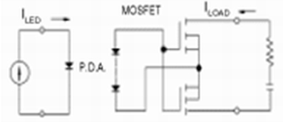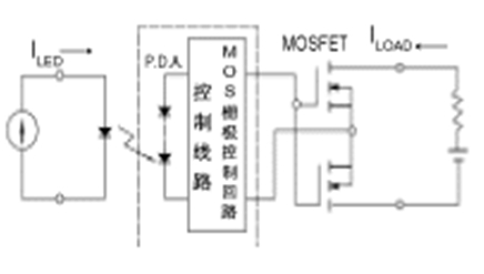 圖1表示FET型半導體繼電器是一種最基本的電路。該電路因輸出元件的功率MOSFET是電壓驅動型元件,因此,由於光電二極管陣列(P.D.A)供給的電壓,而柵極電容被充電,通過使柵極電壓上升到開啟電壓值(門檻電壓),就可使繼電器動作。