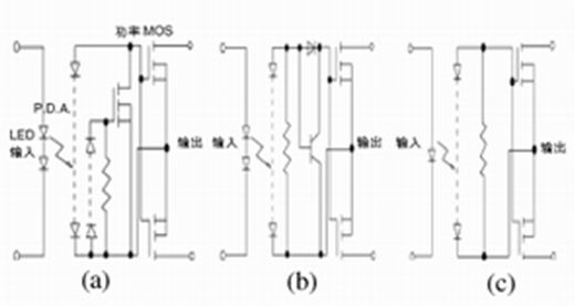 光電元件內置式控製電路如圖3(a)到(c)所示。這些電路的簡單說明如下: