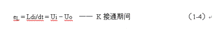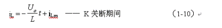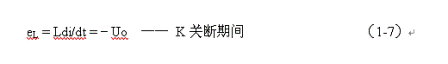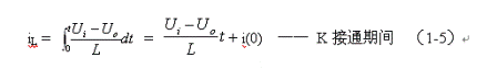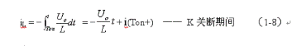 式中–Uo前的負號,表示K關斷期間電感產生電動勢的方向與K接通期間電感產生電動勢的方向正好相反。對(1-7)式進行積分得: