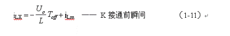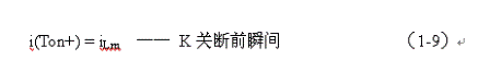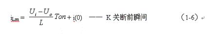 式中i(Ton+)為控製開關K從Ton轉換到Toff的瞬間之前流過電感的電流,i(Ton+)也可以寫為i(Toff-),即:控製開關K關斷或接通瞬間,之前和之後流過電感L的電流相等。實際上(1-8)式中的i(Ton+)就是(1-6)式中的iLm,即: