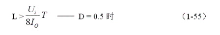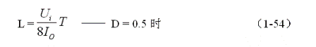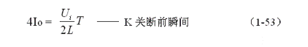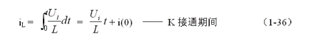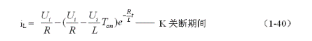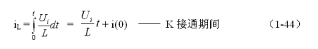 (1-44)式中iL為流過儲能電感L電流的瞬時值,t為時間變量;i(0)為的初始電流,即:控製開關K接通瞬間之前,流過儲能電感L中的電流。當開關電源工作於臨界連續電流狀態時,i(0) = 0 ,由此可以求得流過儲能電感L的最大電流為: