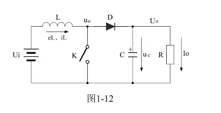 當控製開關K接通時,輸入電源Ui開始對儲能電感L加電,流過儲能電感L的電流iL開始增加,同時電流在儲能電感中也要產生反電動勢eL;當控製開關K由接通轉為關斷的時候,儲能電感也會產生反電動勢eL。eL反電動勢的方向與開關K關斷前的方向相反,但與電流的方向相同,因此,在控製開關K兩端的輸出電壓uo等於輸入電壓Ui與反電動勢eL之和。