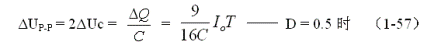 (1-58)和(1-59)式,就是計算並聯開關電源儲能濾波電容的公式(D = 0.5時)。式中:Io是流過負載電流的平均值,T為開關工作周期,ΔUP-P為濾波輸出電壓的波紋,或電壓紋波。一般波紋電壓都是取電壓增量的峰-峰值,因此,當D = 0.5時,波紋電壓等於電容器充電的電壓增量,即:ΔUP-P = 2ΔUc 。