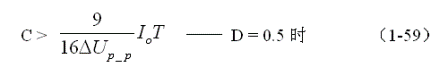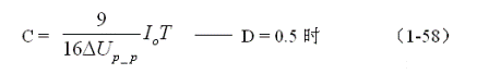 同理,(1-58)和(1-59)式的計算結果,隻給出了計算並聯式開關電源儲能濾波電容C的中間值,或平均值,對於極端情況可以在平均值的計算結果上再乘以一個大於1的係數。