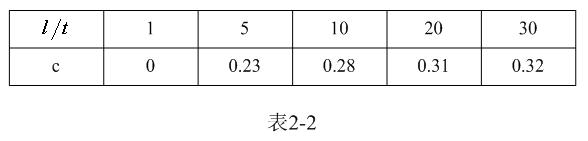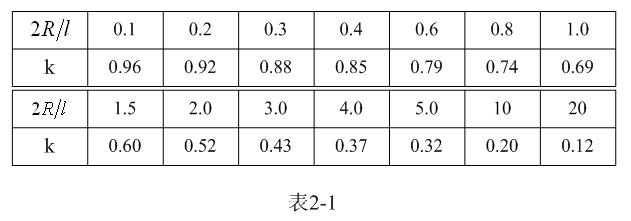 【說明】上式是用來計算多層線圈繞組、截麵為圓形的空心線圈的電感計算公式。長岡係數k可查閱表2-1,係數c可查閱表2-2。當線圈內部有磁芯時,有磁芯線圈的電感是空心線圈電感的