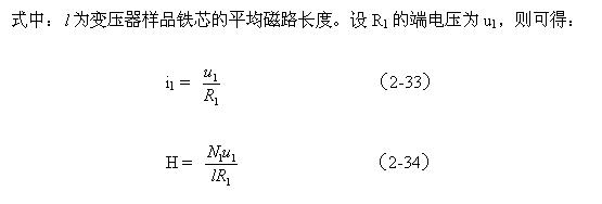 (2-43)式中,B(0)為時間等於零時T2變壓器鐵芯中的磁通密度。同樣,B(0)要與同一時間(即時間等於零時)變壓器T2初級線圈中的勵磁電流i1(0)互相對應才有意義。實際上i1(0)與B(0)的值不可能同時為0,如果i1(0)和B(0)同時為0,示波器所顯示的圖形將是一條斜線(即理想磁化曲線)。
