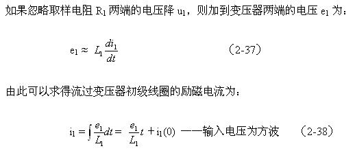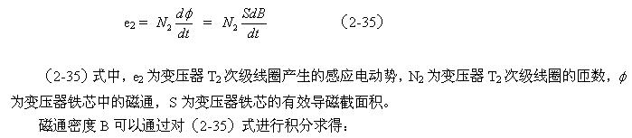 (2-38)式中,e1為加到變壓器T2初級線圈兩端的電壓(這裏為方波),或T1變壓器次級線圈輸出的電壓(方波);L1為變壓器T2初級線圈的電感,i1(0)為時間等於零時變壓器T2初級線圈中的勵磁電流。