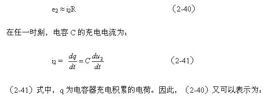 (2-39)式中,i2為流過電阻R的電流,或電容器的充電電流,u2為電容C兩liang端duan電dian壓ya。與yu分fen析xi變bian壓ya器qi初chu級ji線xian圈quan中zhong的de勵li磁ci電dian流liu一yi樣yang,如ru果guo把ba積ji分fen電dian路lu的de時shi間jian常chang數shu取qu得de足zu夠gou大da,電dian阻zu的de阻zu值zhi也ye取qu得de足zu夠gou大da,則ze在zai一yi個ge周zhou期qi內nei電dian容rong兩liang端duan的de充chong電dian電dian壓yau2相對電阻的電壓降是可以忽略的。則(2-39)式可以改寫為: