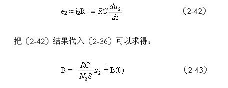 由(2-35)和(2-36)式可以看出,感應電動勢是磁通密度對時間的微分,那麼磁通密度就應該是感應電動勢對時間的積分。因此,對磁通密度B進行顯示必須由一個積分電路組成。在圖2-15中,RC電路正好有這種積分特性。