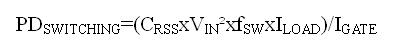 其中CRSS是MOSFET的反向傳輸電容(數據資料中的一個參數),fSW為開關頻率,IGATE是MOSFET的柵極驅動器在MOSFET處於臨界導通(VGS位於柵極充電曲線的平坦區域)時的吸收/源出電流。