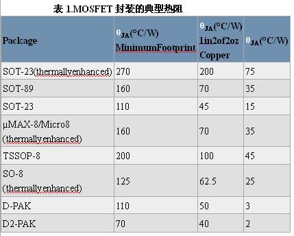 注:同樣封裝類型的不同器件,以及不同製造商出品的相似封裝的熱阻各不相同,和封裝的機械特性、管芯尺寸和安裝及綁定方法有關。需仔細考慮MOSFET數據資料中的熱信息。