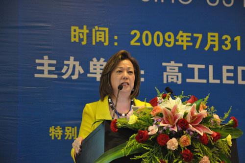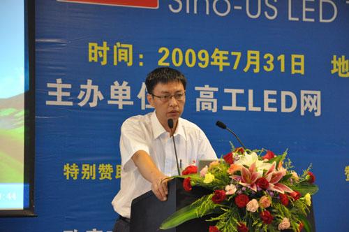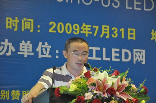 深圳市量子光電子有限公司總經理劉鎮做了題為《中國LED技術和產業發展趨勢》的演講。劉總指出中國LED產業從業人員約50餘萬人,LED器件產量400億隻/年以上,2008年市場規模大於300億元人民幣。全國26家已投產和在建的芯片企業加起來不如國際排名前十名企業中一家的規模,技術水平相當於台灣地區3年前美日地區5年前的水平。他認為中國LED產業存在以下問題:缺乏自主知識產權、缺乏行業標準、投資分散、產業規劃方向性和策略性不夠明確、缺乏產業化人才和教育支撐等。不過他也樂觀地指出未來3-5年內將會有越來越多的大型企業投資到LED的各個領域,不管從那一端進入,最終都將投入到外延及芯片製造,所以5-10年中國內地將取代台灣成為亞洲最大的LED芯片製造基地。