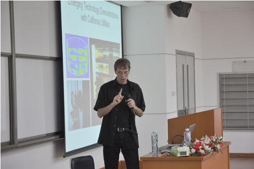 在課堂上,美國加州照明技術中心主任Michael Siminovitch教授講授的課程是《LED室內照明設計》。他認為住宅照明是LED最大的增長機會之一,加州州長07年簽署的法案規定2018年室內住宅照明耗電必須比2007年下降50%以上。他舉LED廚房照明為例,采用白熾燈的話要700瓦,改為LED燈具後,功率可以降到100-150瓦。他指出1200萬家庭的廚房每家功率節省192瓦,那麼總共可以節省2.33GW,相當於加州最大核電站的功率。他從眩光、顏色、成本、耐用性和效率等方麵講述了LED在室內照明的應用潛力。演講中他列舉了很多應用案例,包括零售店、辦公室、車庫等場所。