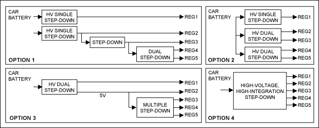 有助於合理利用開關電源/線性穩壓器。例如,如果係統中提供為處理器供電的3.3V電源,相對於直接從汽車電池降壓到1.8V,從3.3V電壓產生1.8V300mA的電源效率更高、成cheng本ben也ye更geng低di。如ru果guo新xin設she計ji中zhong需xu要yao更geng改gai電dian源yuan電dian壓ya,舊jiu的de電dian源yuan模mo塊kuai不bu再zai滿man足zu要yao求qiu時shi,設she計ji人ren員yuan可ke以yi很hen容rong易yi地di選xuan擇ze一yi個ge替ti代dai模mo塊kuai,不bu會hui造zao成cheng任ren何he浪lang費fei。