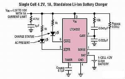 LTC4052xuyaoyigedianliushouxiandeqiangshangshipeiqi,yikongzhichongdiandianliudedaxiao。tahaixupeibeiguoliubaohudianlu,yibianzaiyiwaishiyongjiaogaodianliuhuoqiangshangshipeiqifashengguzhangshinengtigongbaohu。LTC4052是一款全集成的脈衝充電器,無需使用外部MOSFET或阻流二極管(見圖3)。這款獨立的充電器IC具有C/10檢測、充電狀態指示、充電結束定時器、牆上適配器檢測及過流保護等功能。LTC4052的輸入電源可以是4.5V到12V,並具有1%的飄移電壓精度。