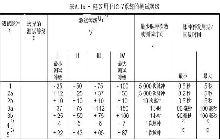 圖2:ISO-7637-2中用於12V/24V係統的測試等級