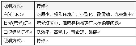 隨著製造技術在近十年來的突飛猛進,上述缺點,包括LED的熱阻逐漸降低、光品質也在提升中。2008年,除了LED白冷光的發光效率已達到100Lm/W,而LED暖白光的發光效率,預計在2010年,也可從目前的70Lm/W提高至100Lm/W。與目前其它通用光源相較,鎢絲燈泡約15Lm/W、螢光日光燈約45~60Lm/W、HID燈約120~150Lm/W,LED的發光效率顯然已漸具優勢;以下是針對LED及其它常見燈具的燈性比較: