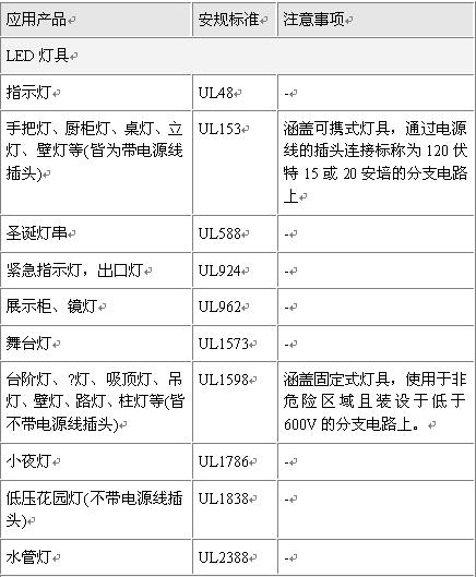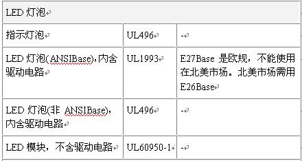 以下首先針對LED燈具、LED燈泡及LED驅動器等三種基本產品分類,及其分別沿用至各成品或零件時,所應參考的UL安an規gui標biao準zhun及ji應ying特te別bie注zhu意yi事shi項xiang,以yi做zuo為wei業ye者zhe欲yu進jin行xing產chan品pin安an規gui檢jian測ce的de基ji本ben指zhi南nan。不bu過guo該gai表biao僅jin供gong讀du者zhe參can考kao,產chan品pin實shi際ji的de歸gui類lei,仍reng須xu依yi產chan品pin的de用yong途tu及ji其qi使shi用yong環huan境jing來lai決jue定ding。