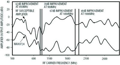 圖6Maxim公司的耳機驅動器MAX9724極大提升了抗射頻解調能力