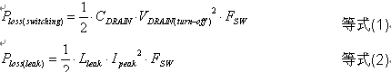 要yao滿man足zu上shang述shu規gui範fan對dui外wai部bu電dian源yuan工gong作zuo能neng效xiao及ji待dai機ji能neng耗hao的de要yao求qiu,我wo們men首shou先xian需xu要yao分fen析xi清qing楚chu損sun耗hao的de來lai源yuan。事shi實shi上shang,就jiu工gong作zuo時shi的de損sun耗hao來lai說shuo,主zhu要yao包bao括kuo兩liang個ge方fang麵mian,分fen別bie是shi開kai關guan損sun耗hao和he由you泄xie漏lou電dian感gan導dao致zhi的de損sun耗hao,這zhe兩liang類lei損sun耗hao分fen別bie可ke以yi用yong等deng式shi(1)和等式(2)來量化: