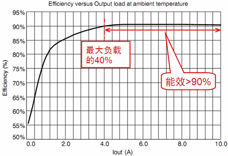 圖4:NCP1252演示板在室溫及額定輸入電壓(390 Vdc)條件下的能效圖。