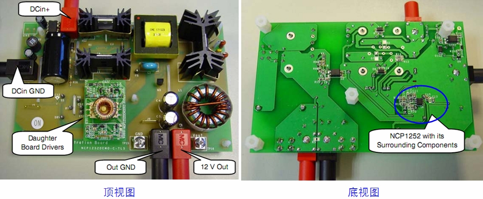 圖3:NCP1252演示板的頂視圖及底視圖。