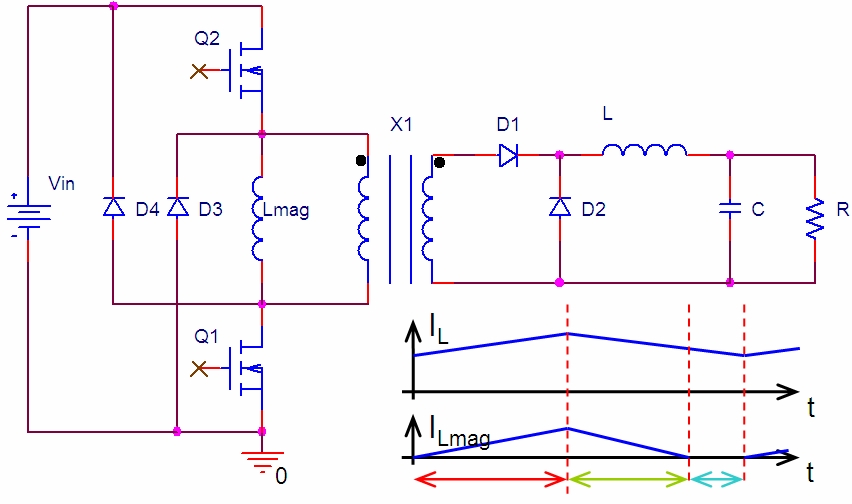為了恰當地磁芯複位,需要極小的勵磁電流來對繞組電壓反相。根據經驗法則,勵磁電流為初次峰值電流(I