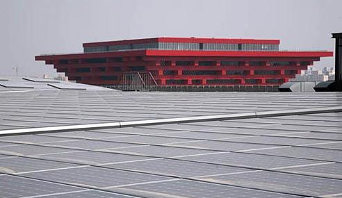 中國航天科技集團公司上海航天技術研究院所屬上海航天汽車機電股份有限公司副總經理、新能源光伏事業部部長王厚銓25日接受采訪時表示,上海世博會太陽能發電項目在中國目前太陽能發電中光伏建築一體化規模最大、技術最多,也是世博史上太陽能發電技術的最大規模應用。在整個世博園區,世博中心、中國館、主題館等都應用到太陽能發電技術,其中,僅世博中心就建成1兆瓦太陽能發電項目,屋頂上大麵積鋪設高效太陽能電池組件、牆麵上裝有雙麵玻璃透明遮陽太陽能電池組件,占地8000平方米左右,可實現年發電100萬度、年CO2減排900餘噸。