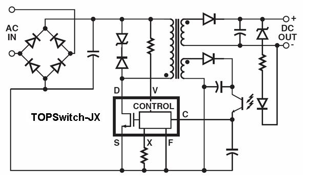 圖:TOPSwitch-JX用於反激式電源設計