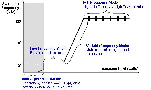PI市場部資深經理李子俊強調了TOPSwitch-JX特有的多模式控製(MCM)算法,采用該技術可持續監測輸出功率,以確定最佳開關模式並改變MOSFET的工作頻率,從而提高整個負載範圍內的功率效率。該技術是內建在TOPSwitch-JX芯片內部的,無需電源工程師做特殊的設計。李子俊表示:“kaiguandianyuanshejidezhuyaosuqiushizaiqingzaideshihouruhebadianyuanbenshengonghaojiangdi,zaizhongzaideshihouruhebazhuanhuanxiaolvtigao。caiyonggaiteshudejishu,zaikongzaiheqingzaishijiangdikaiguanpinlv,nengjidadejiangdiqingzaijikongzaidegonghao,對於能源之星要求的顯示器待機100mW,適配器空載100mW,以及PC電源待機0.5W的要求,均能充分滿足。比如針對一款顯示器的設計,在264VAC輸入時空載功耗為66mW,加上待機時負載功耗30mW,完全能滿足標準要求。此外,由於從輕載到重載開關頻率也在線性變化,從而保證了從輕載到重載的轉換效率平整。”