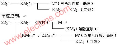2、雙速三相交流異步電動機自動控製變極調速線路