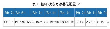 DS3232/DS3234在用戶可編程寄存器中提供了一個域,允許用戶延長溫度更新的時間,從而降低平均電流損耗。兩款器件在控製/狀態寄存器中提供C_Rate位,用來設置四種不同的溫度更新周期。寄存器定義如表1所示。