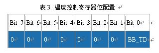 DS3234加入了溫度控製寄存器,當器件由備用電源供電時可以禁止溫度更新。寄存器中的BB_TD位控製溫度測量禁止。該位上電時的默認值為0,溫度更新功能有效。寄存器定義如表3所示。