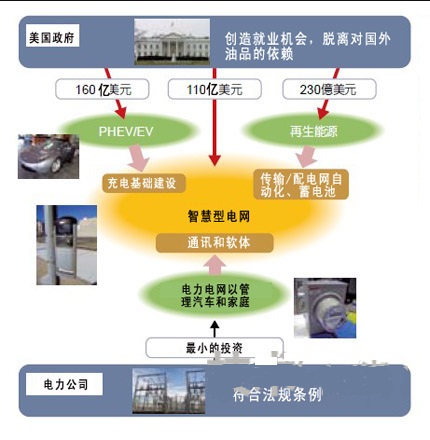 美(mei)國(guo)在(zai)構(gou)建(jian)智(zhi)能(neng)電(dian)網(wang)的(de)同(tong)時(shi),還(hai)將(jiang)一(yi)舉(ju)建(jian)設(she)充(chong)電(dian)基(ji)礎(chu)設(she)施(shi)。許(xu)多(duo)企(qi)業(ye)為(wei)獲(huo)得(de)這(zhe)一(yi)市(shi)場(chang)而(er)參(can)與(yu)了(le)競(jing)爭(zheng),他(ta)們(men)的(de)目(mu)標(biao)是(shi),以(yi)電(dian)力(li)資(zi)訊(xun)為(wei)核(he)心(xin)推(tui)出(chu)新(xin)的(de)服(fu)務(wu),以(yi)成(cheng)為(wei)汽(qi)車(che)和(he)家(jia)電(dian)產(chan)業(ye)的(de)主(zhu)角(jiao)為(wei)目(mu)標(biao)。